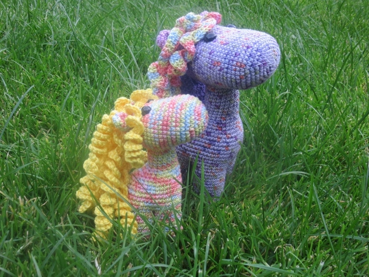 Mama Pony wird ca. 20 cm groß bei Verwendung von Baumwolle (125 m/50 gr) und NS 2,5