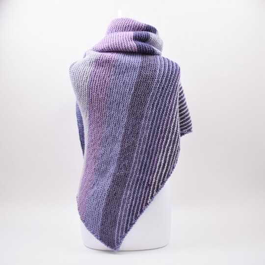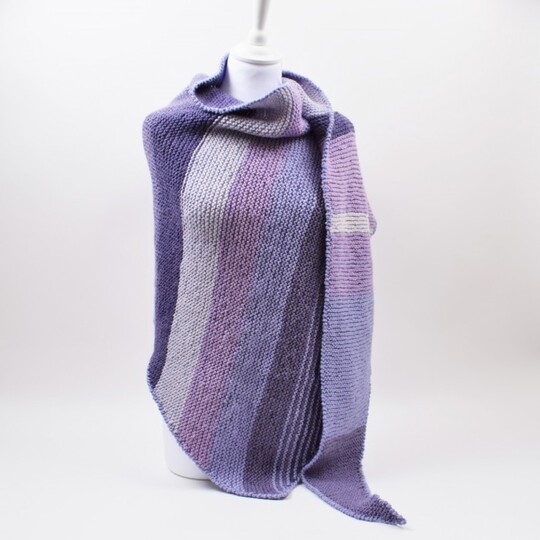 Lovely knitted asymmetric shawl with stripes. Knitted using Lollipop yarn. Enjoy!