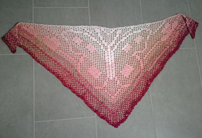 Copyright note: This pattern is for private use only. You are not allowed to sell, duplicate or trade it or parts of it. You are allowed to sell the finished shawl, but please use the note: „Made with the pattern from Krea_Tina“ or with a link to this pattern.