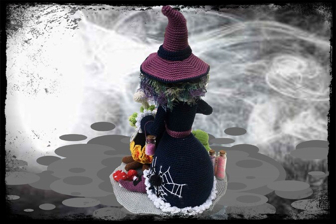 The finished Witch is 37 cm tall. A small PDF crochet school can also be downloaded.
