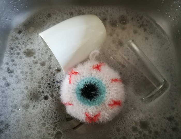Boring sponges have an end. With this sponge, washing the dishes will be creepy fun.
