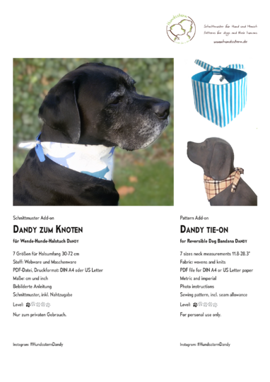Important: You'll need the basic pattern DANDY reversible dog bandana (https://www.crazypatterns.net/en/items/45515/dandy-reversible-dog-bandana-sewing-pattern).