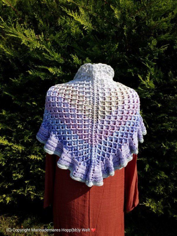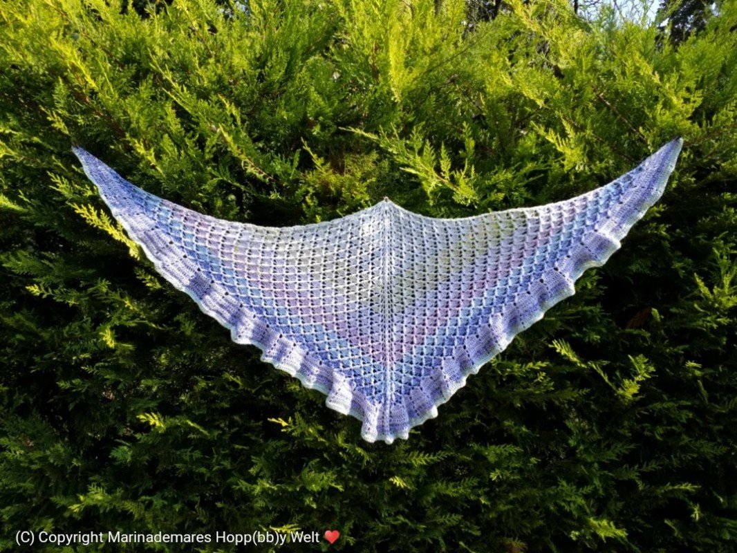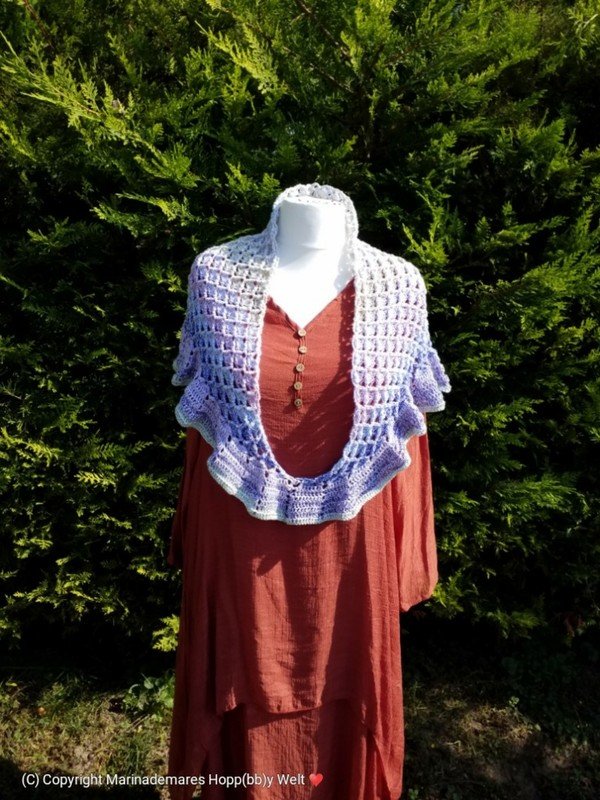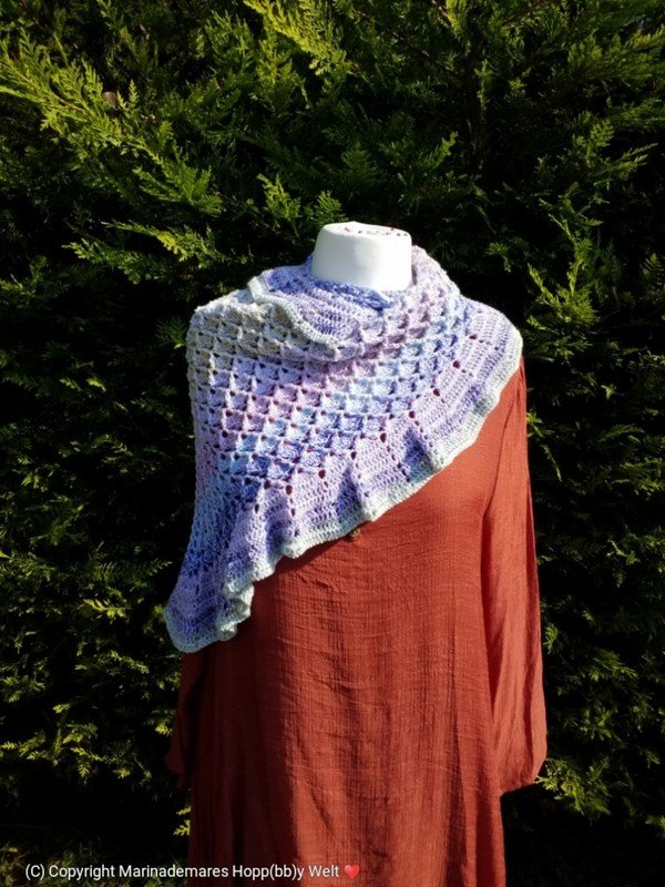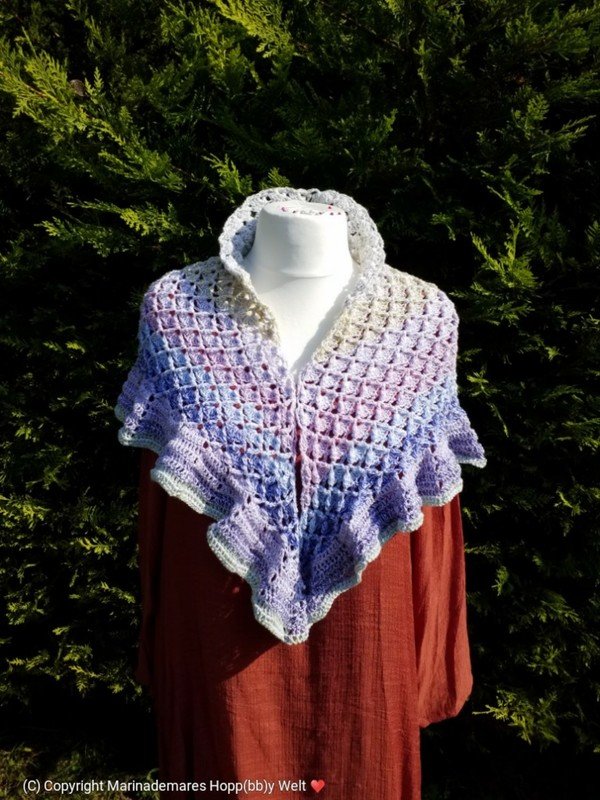 LOTU = kann als Dreiecks Tuch mit oder ohne Rüschen gehäkelt werden. Auch kann man es weiter zum LOTU - Loop häkeln. Jede Größe beliebig erweiterbar.