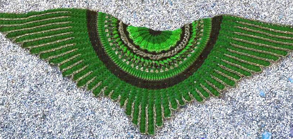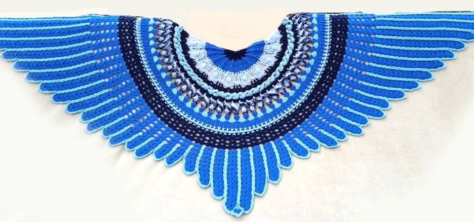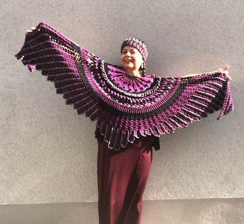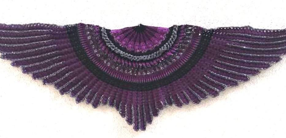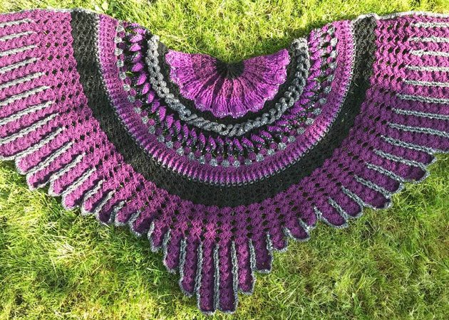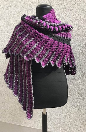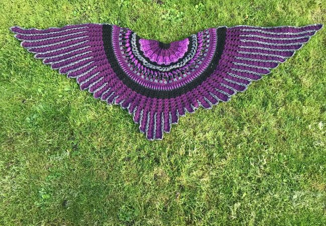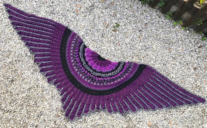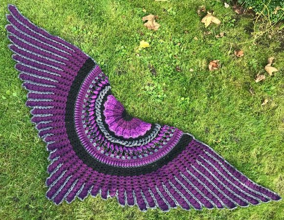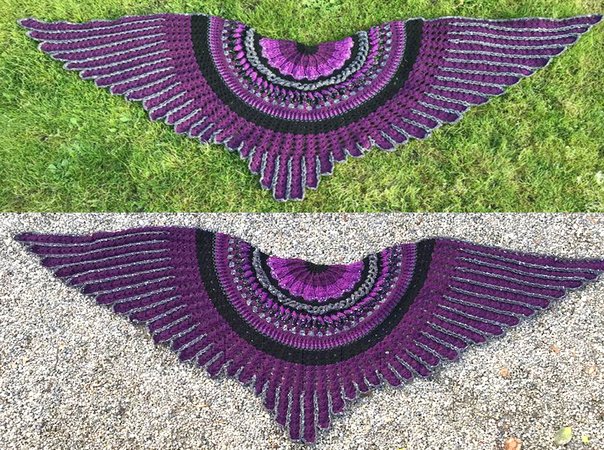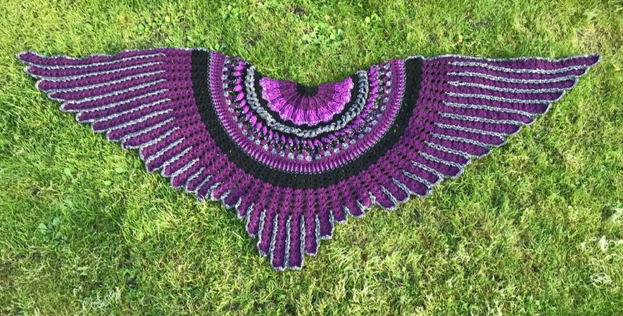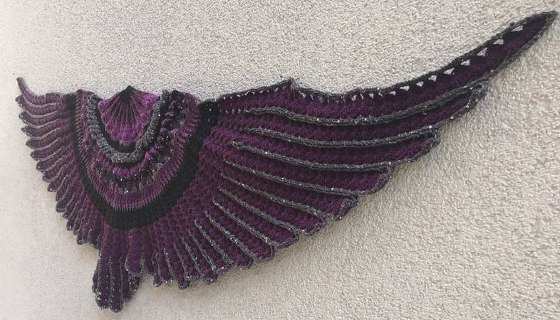 The “Midnight Angel” Shawl is a wonderful crochet project....fascinating stitches at the beginning... and a challenge for your patience at the end! Once finished, “Midnight Angel” will wrap its wings around your shoulders and shield you against the cold – spread out, is has an amazing total width of 1,8 metres.
