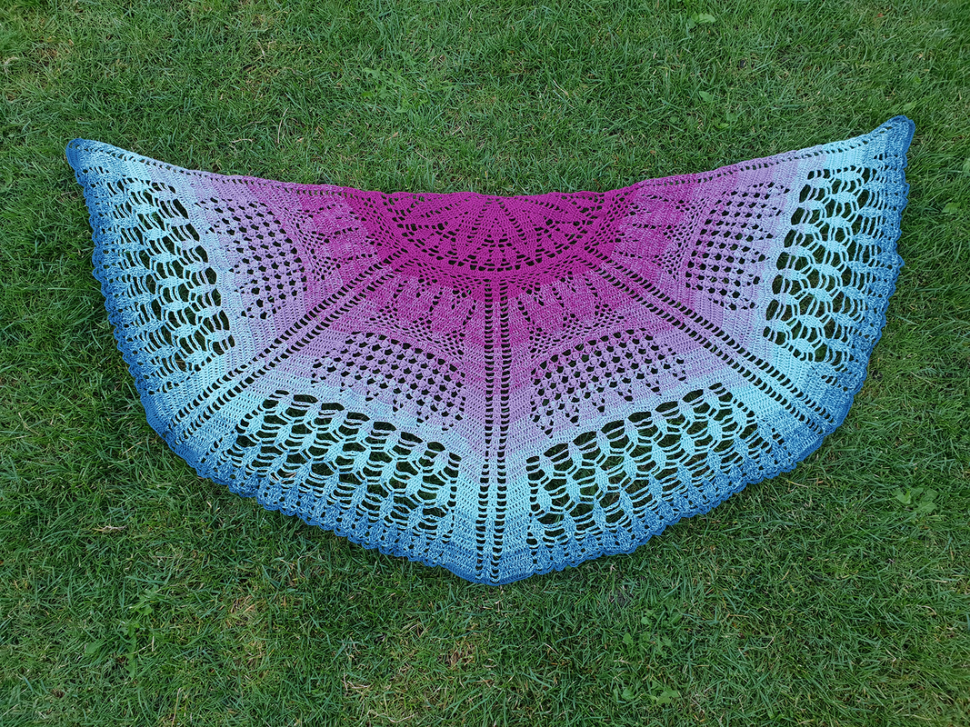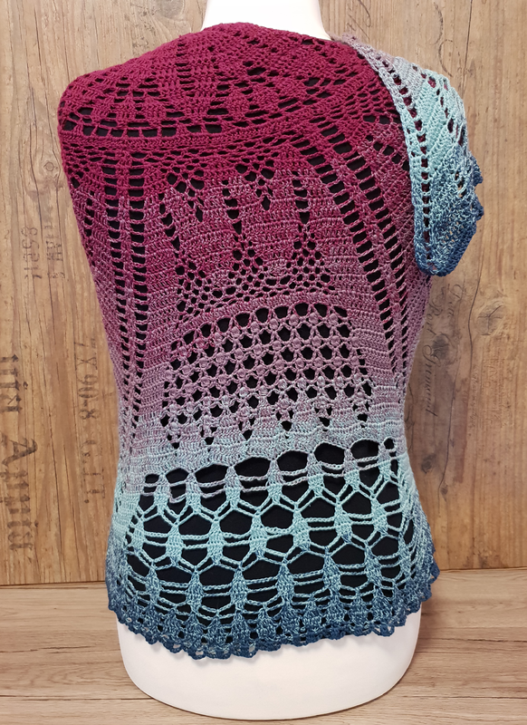 Das Tuch wird aus schönem Farbverlaufsgarn gehäkelt. Die Häkelanleitung Tuch Bromtrol beschreibt, wie das Tuch in 4 Mustersätzen gehäkelt wird. Das Tuch Bromtrol selber ist ein wunderschönes Schultertuch, dass entweder locker, oder figurbetont angelegt werden kann.