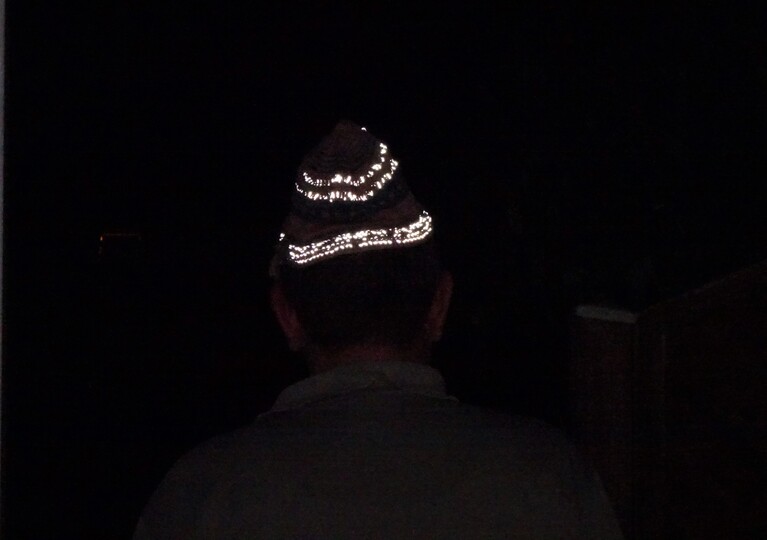 Das besondere an der Mütze ist, das ich einen Leuchtfaden von Prym streifenweise mitgestrickt habe und die Mütze somit leuchtet wenn sie im Dunkeln angestrahlt wird, sie ist also quasi eine Sicherheitsmütze. Sie ist für einen Kopfumfang von 52 cm ausgerechnet.