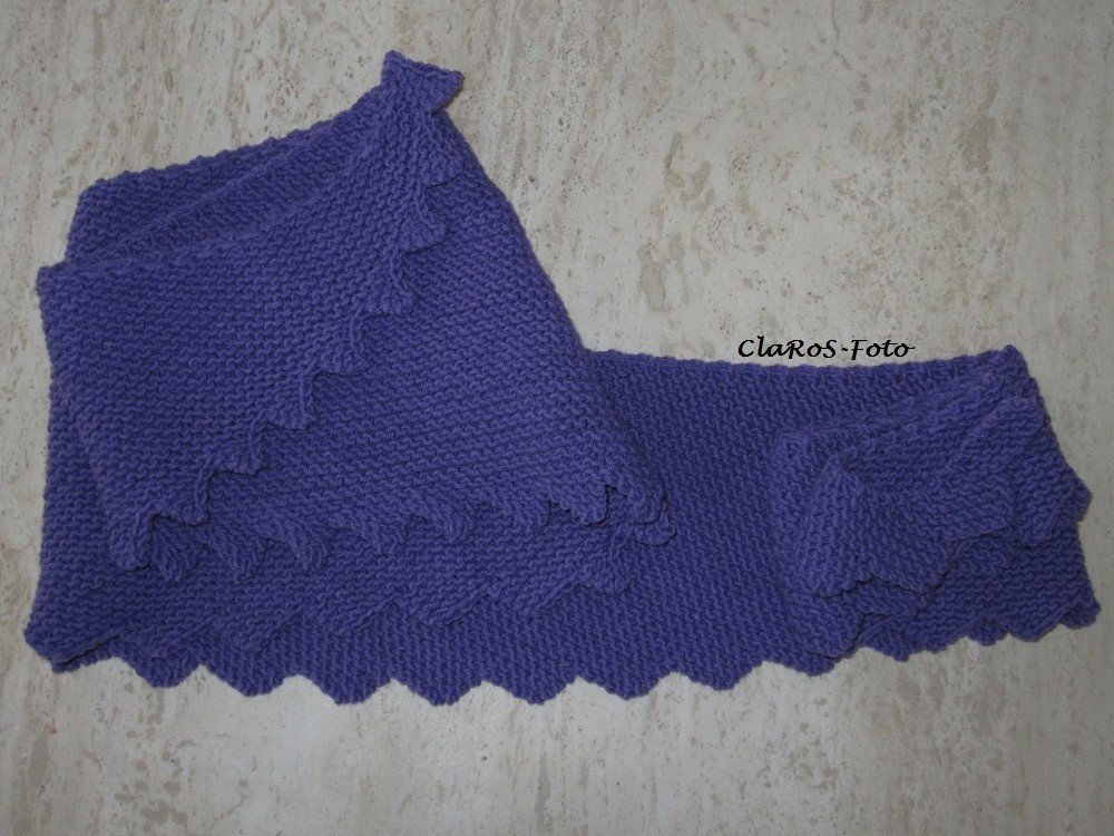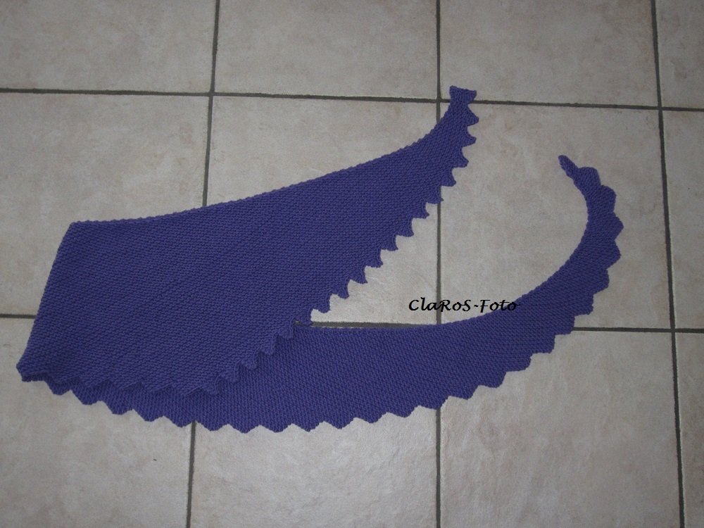 The asymmetrical shape and jagged edge on two sides lends this shawl a unique charm.