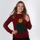 The coolest christmas sweater with a christmas tree in front.