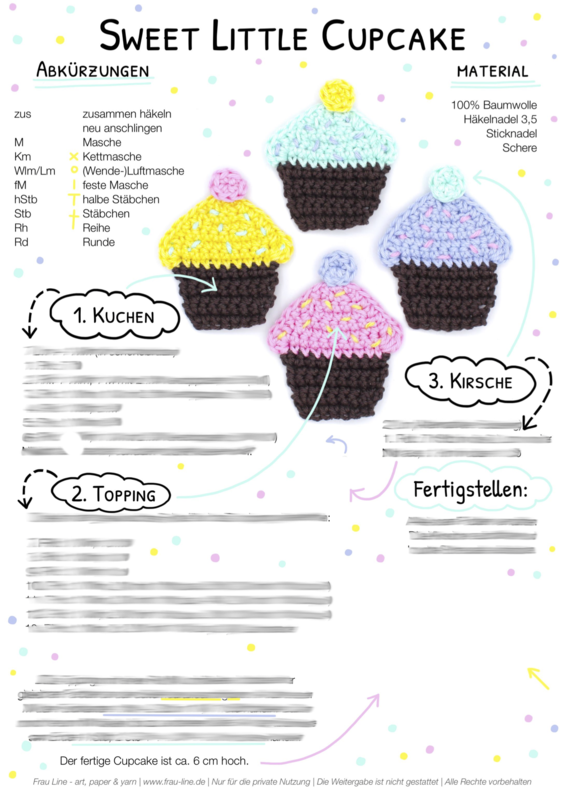 E-Book, Häkelanleitung für die Applikation "Cupcake", 1 Seite, Schwierigkeitsstufe: Fortgeschrittene