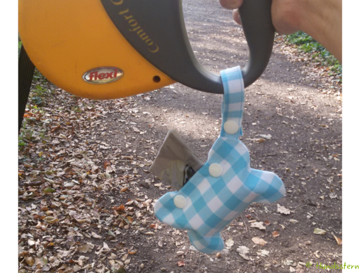 Walkies Bone, sewing pattern and instructions for a stylisch poo bag pouch in the shape of a bone with strap to fasten it to the leash, jacket or belt.