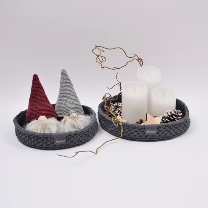 Create “hygge” and christmas spirit with these beautiful and simple decoration trays in 3 sizes. They are crocheted around Go Handmade’s PU leather bases with Hobbii Ribbon which make the trays extra durable and stable.