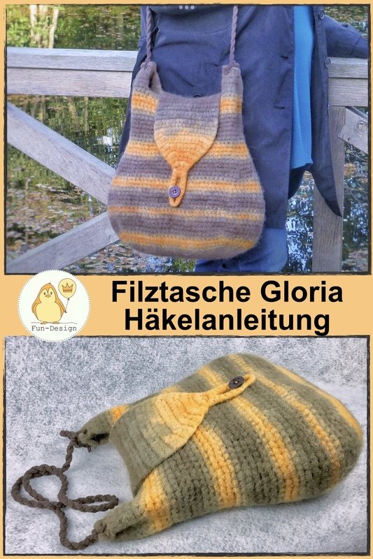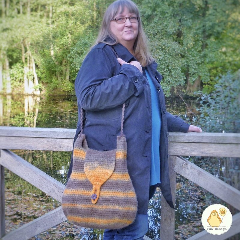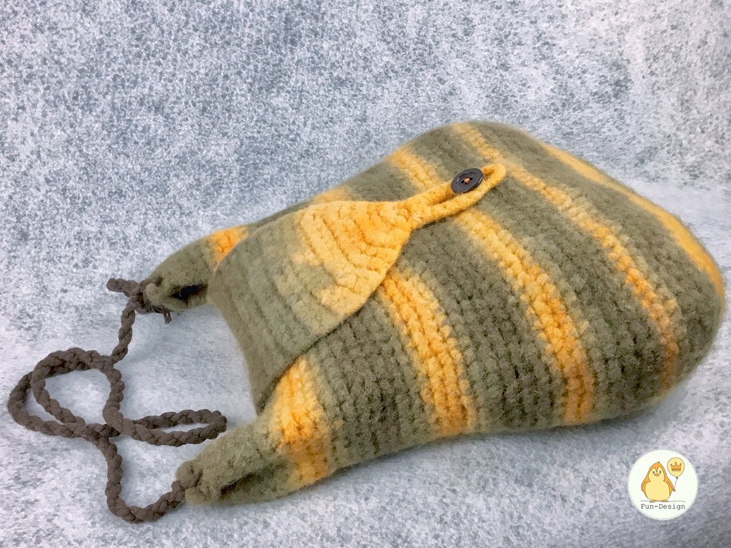 Diese Filztasche wird zuerst gehäkelt und dann in der Waschmaschine gefilzt - durch das filzen wird sie schön kompakt, ein Innenfutter ist nicht notwendig.