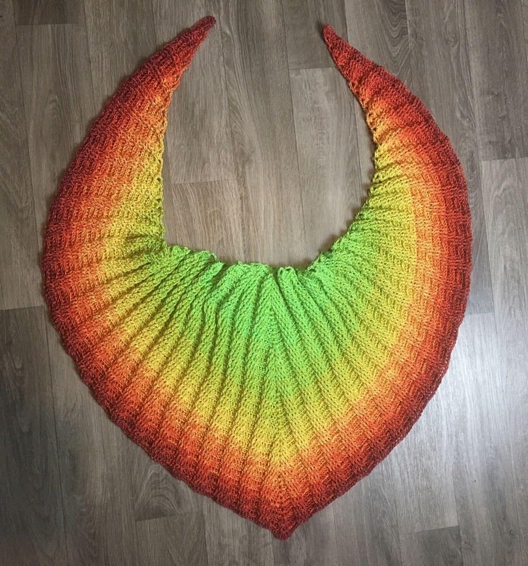 For my shawl in the example I used 2000m / 4 ply yarn cake with hook size 4.
