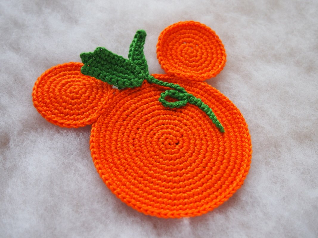 The pumpkin coaster that you can create with this pattern will be about 4,7 inches (12 cm) high and 4,7 inches (12 cm) wide.