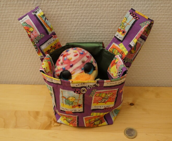 Das Muster der Tasche im Bild erscheint auf der Vorderseite auf dem Kopf (kurz nicht aufgepasst...) Ich zeige Dir in der Anleitung, wie Du das verhindern kannst.