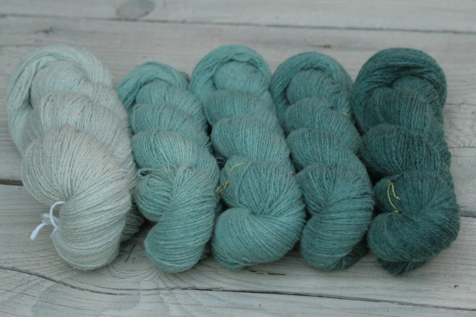 The sample is worked in an unusually light yarn, with a long yardage. This beautiful gradient was dyed by Yundi&Grete.