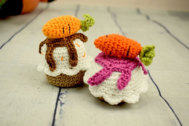 2- Patterns for - carrot cupcakes(2), carrots(2), honey pot(1), strawberry pie(1), chicken butt(2).