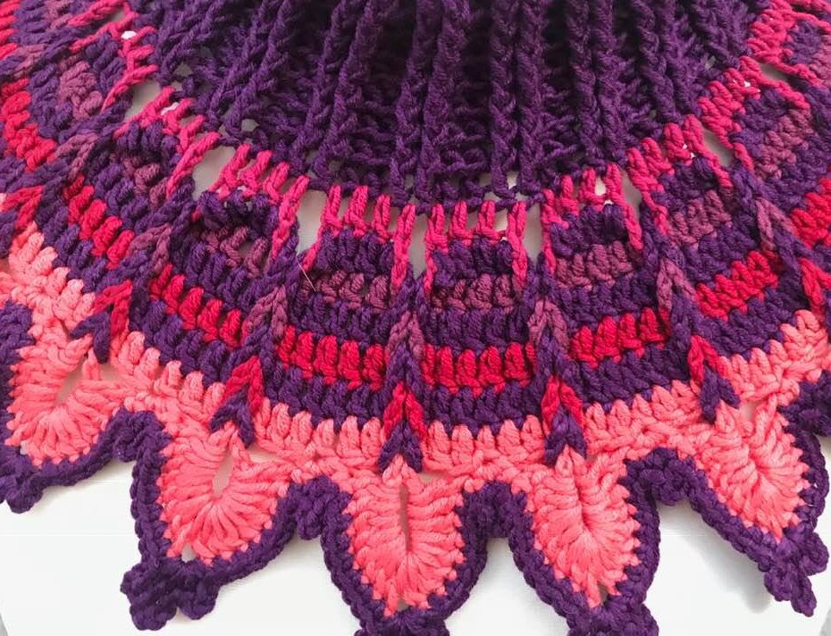 ich benutze eine Wolle die auf 50 gr- 120 m hat von der Hauptfarbe ( dunkellila) brauchen wir 2 Knäule