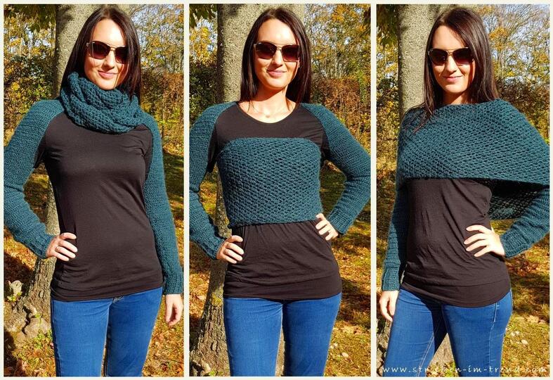As the name already suggests, this sleeve scarf can be worn in many different ways – whether as a loop, bolero or shoulder wrap.