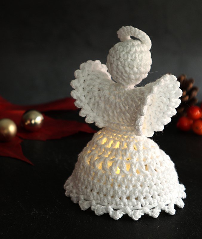 The angels are crocheted in one piece, only the halo is specially made and sewn on.