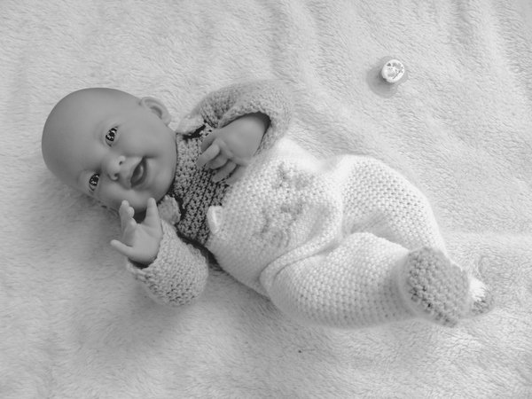 This cute romper packs the little doll baby comfortably warm. When a sibling comes, the "big ones" also want to put on their doll, just like mom does the baby.