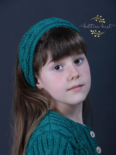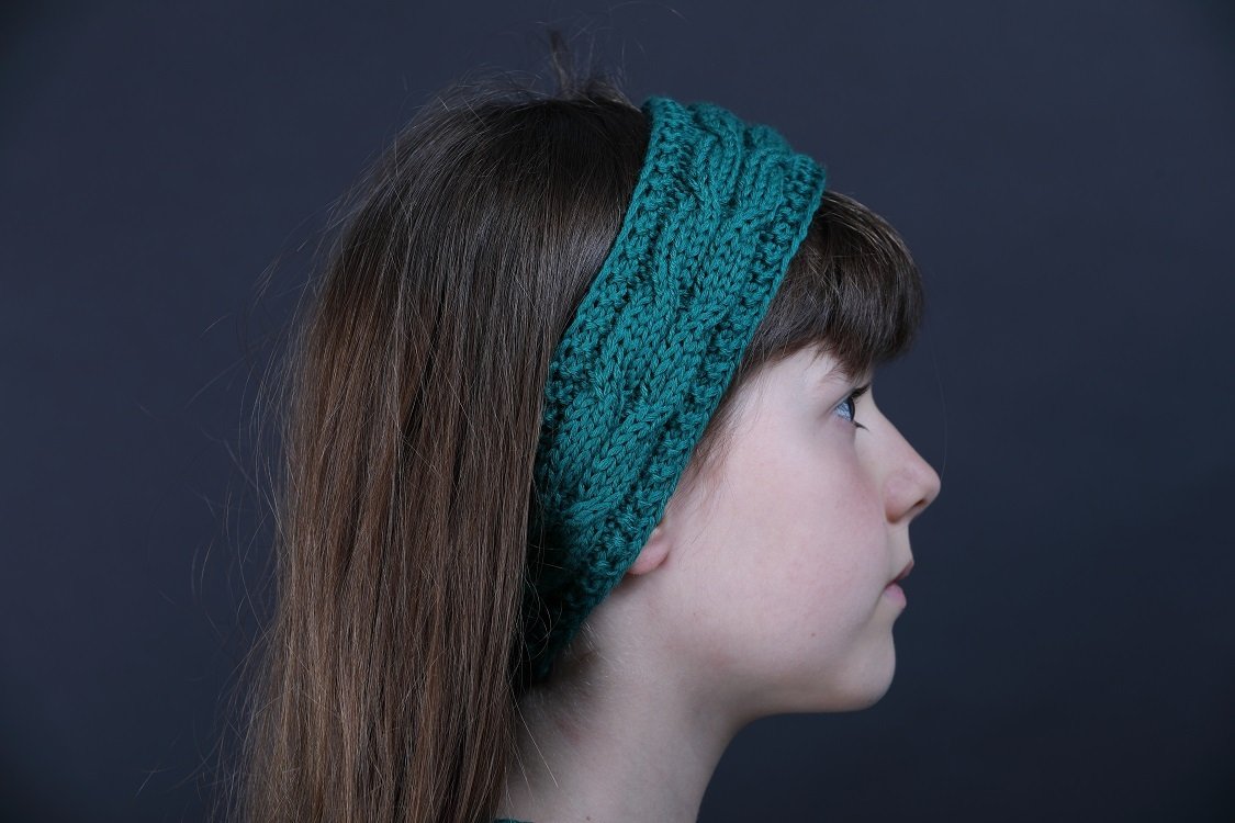 The headband is knitted transversal. Therefore it can be easily adjusted to smaller and larger head circumferences.