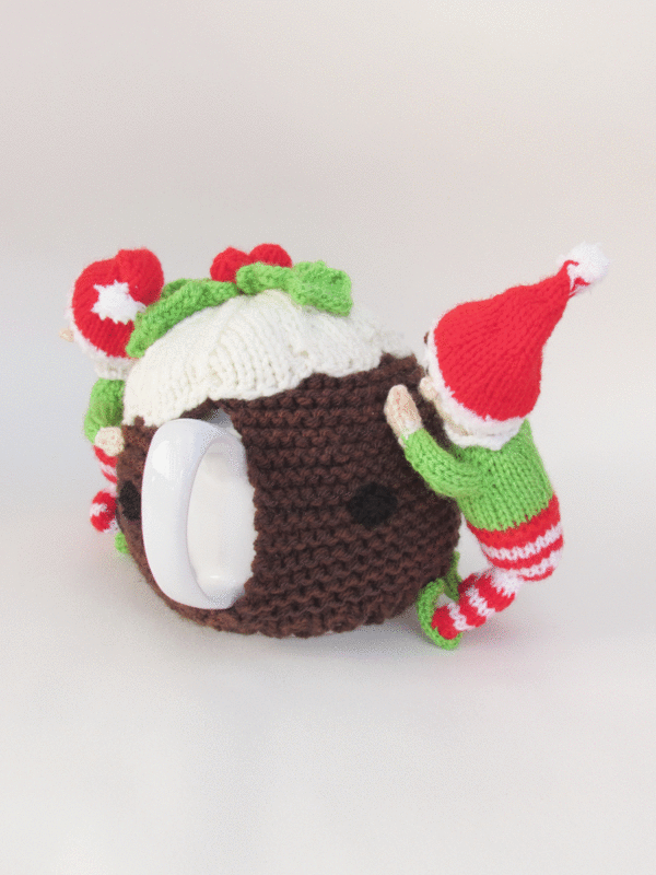 The Elves and Christmas Pudding Tea Cosy is a humorous tea cosy with Christmas pudding stealing elves.