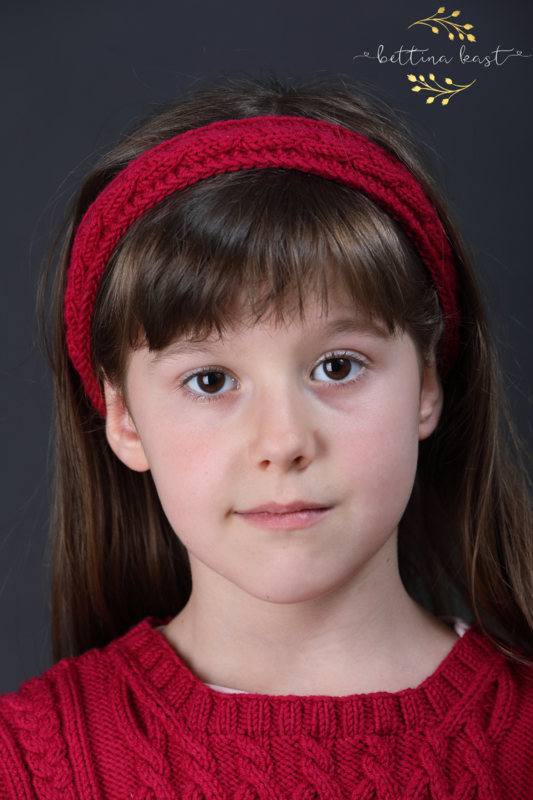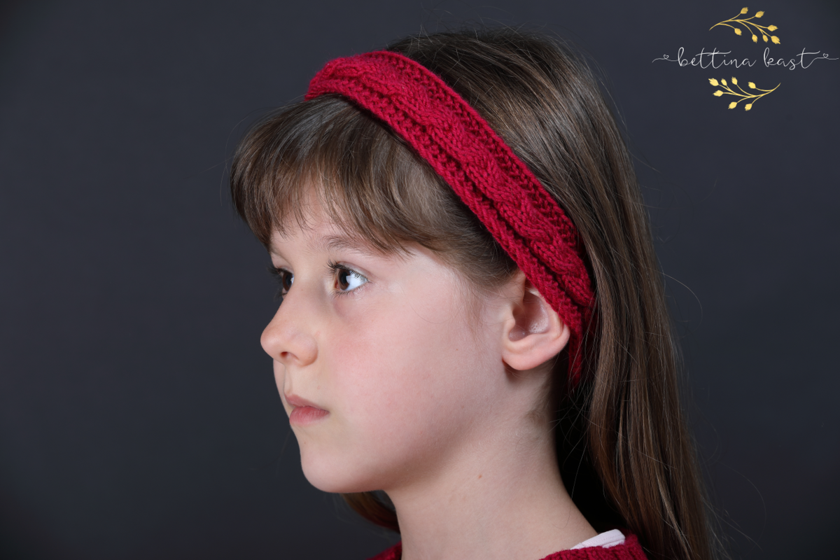 The headband is knitted transversal. Therefore it can be easily adjusted to smaller and larger head circumferences.