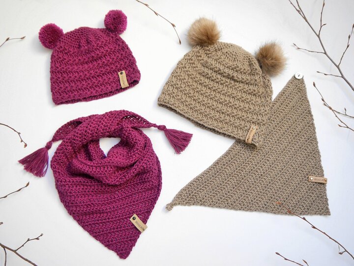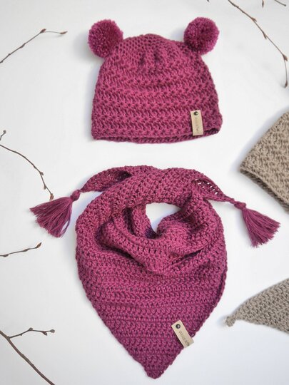 Always perfectly dressed. With this lovely baby set, consisting of a cap and a triangular scarf, your sweetheart will feel good and look great. The pattern includes all sizes from neonates up to 5 yo kids. The right cotton mix yarn (worsted) will present the asterisk design at its best.