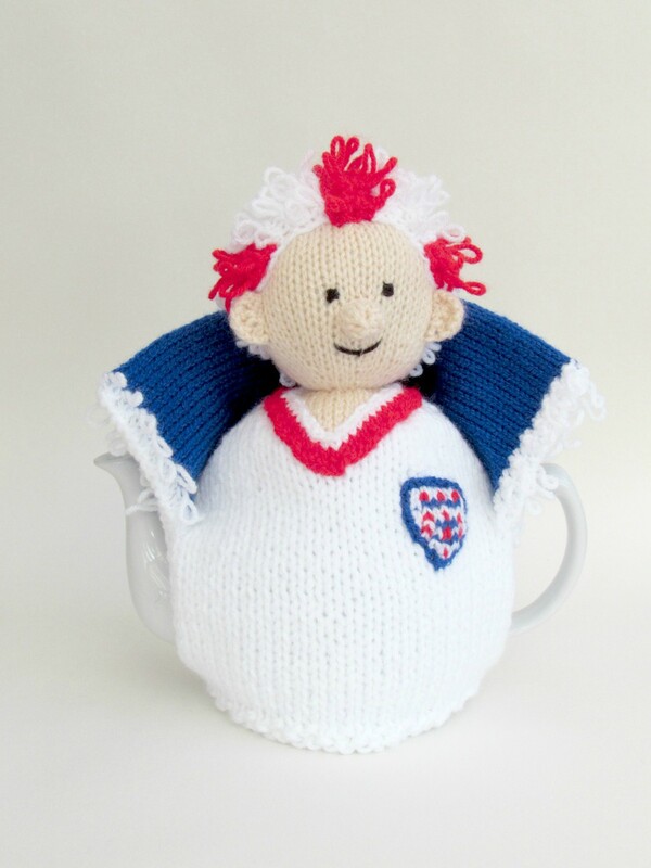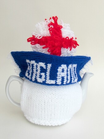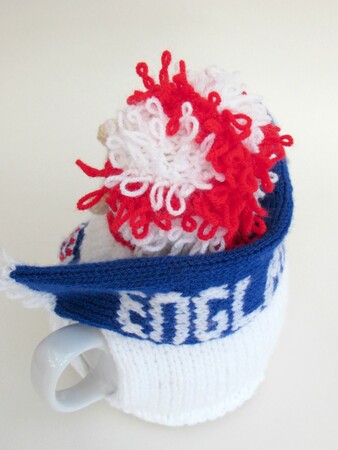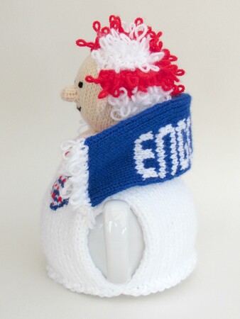 This product is the knitting pattern only; to knit your own England Football Crazy tea cosy.