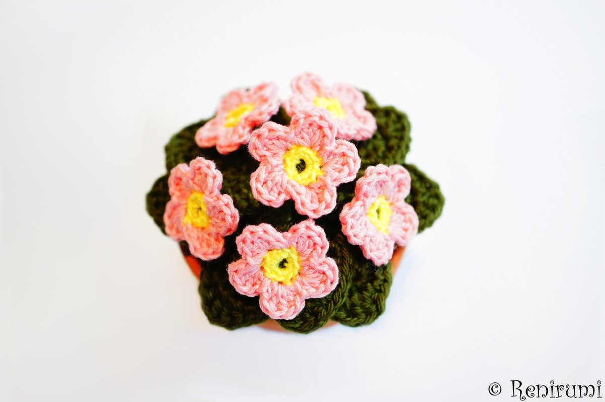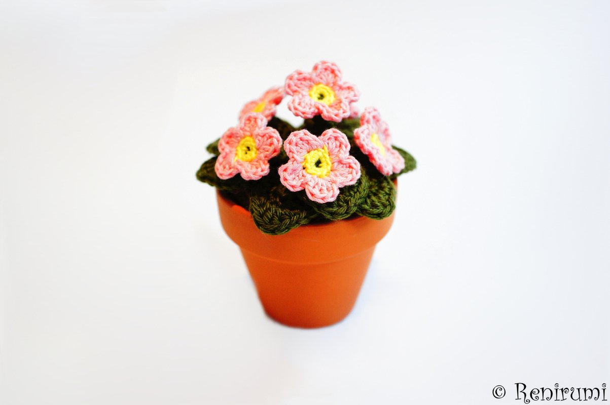 Crochet pattern pot flower primrose