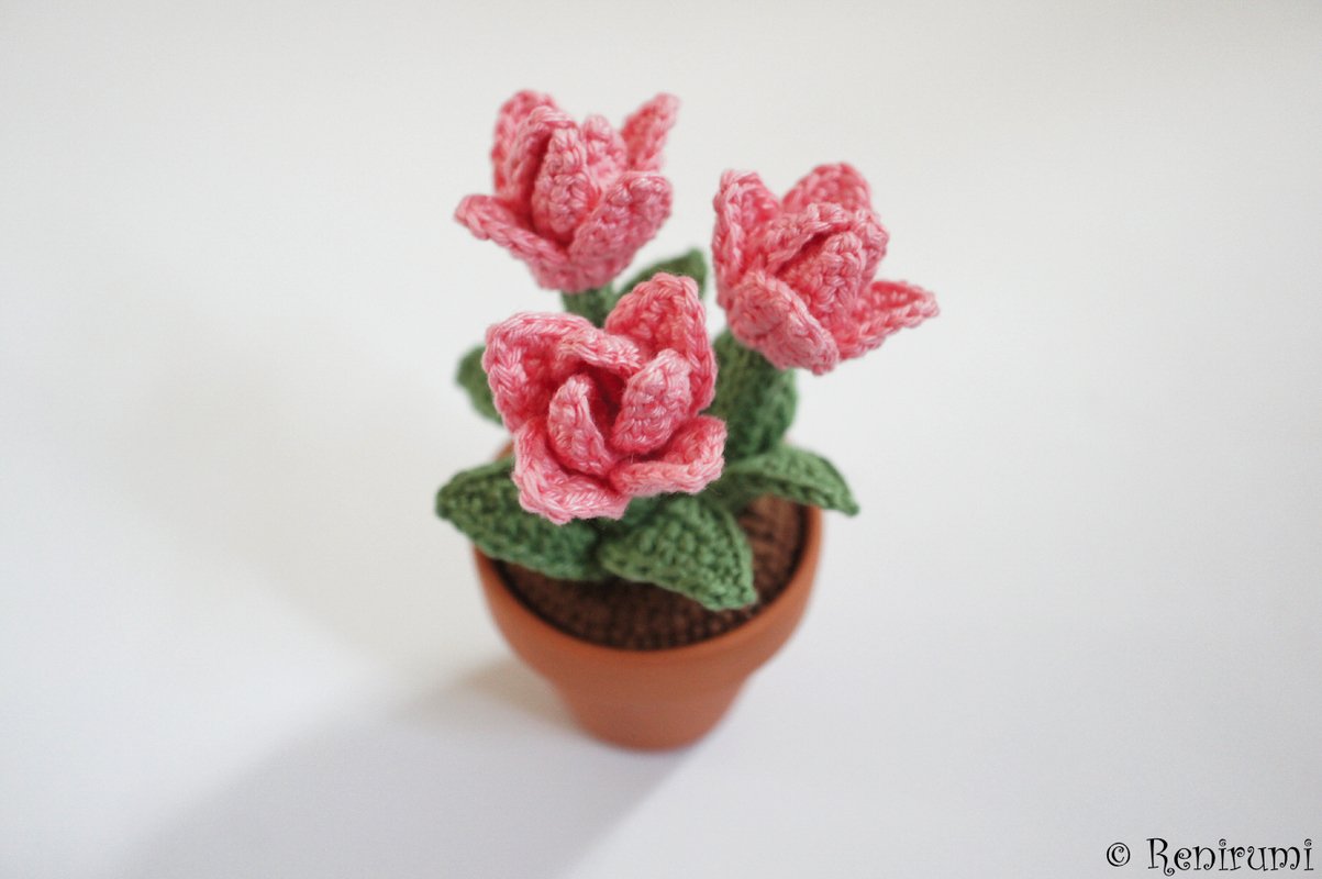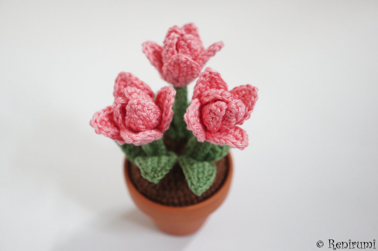 Crochet this beautiful pot flower tulip with this nine-page, abundantly illustrated crochet pattern.