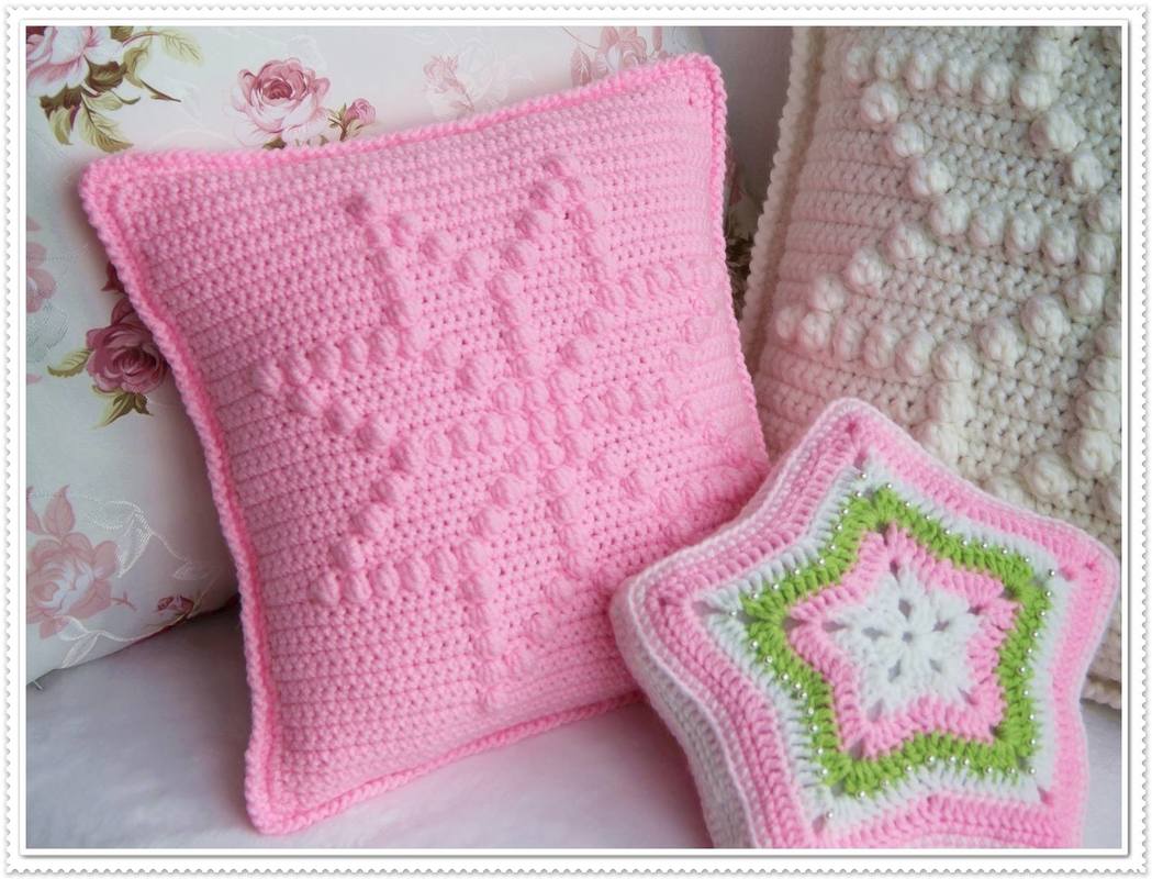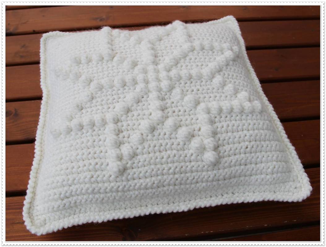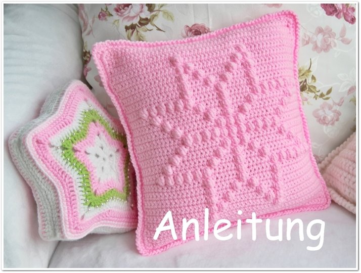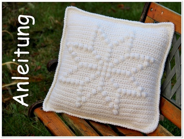 Ein schöner selbstgemachter Kissenbezug findet überall sein Lieblingsplätzchen - vielleicht zusammen mit anderen Kissen. Ihr könnt diesen hier in Eurer gewünschten Größe fertigen, indem Ihr dickeres oder dünneres Garn in Eurer Lieblingsfarbe wählt. Mit seiner Einfarbigkeit, den verspielten Noppen und dem hübschen Rand passt es einfach überall gut dazu. Auf der Rückseite gibt es einen intelligenten Fädel-Verschluss, so dass wir den Bezug bei Bedarf auch waschen können.