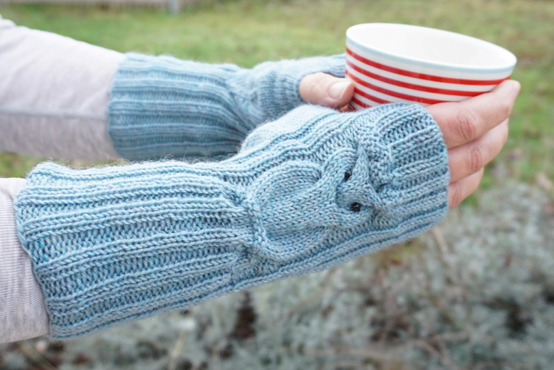 Strickanleitung für wunderbar kuschelig warme Armstulpen mit Eulenmotiv in 2 Größen (Erwachsene + Teenager und Kinder ab 6 Jahre)