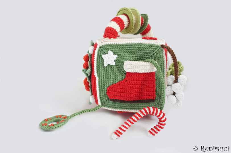 Crochet this beautiful and colourful activity cube with this 22-page, abundantly illustrated crochet pattern.