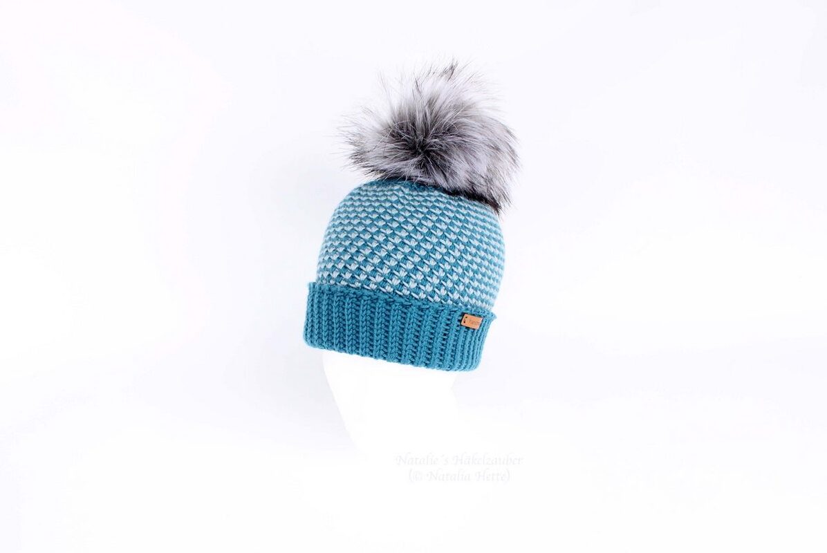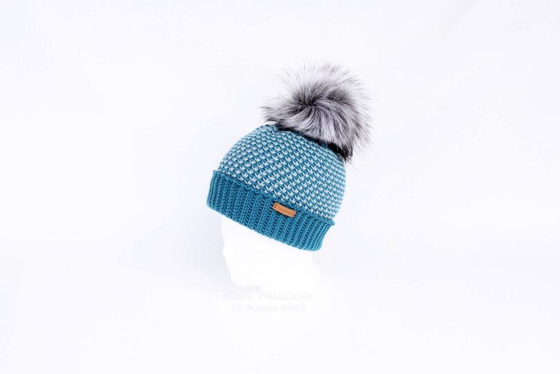 This PDF crochet tutorial consists of illustrated pattern for crocheting a beanie with the two-color pattern. The cuff and the upper part look like knitted. The hat can be crocheted with or without the lapel, which is described in the instructions. Of course you can also crochet it in one colour. This hat can be crocheted for both children and adults and is a unisex hat.