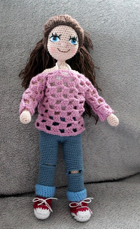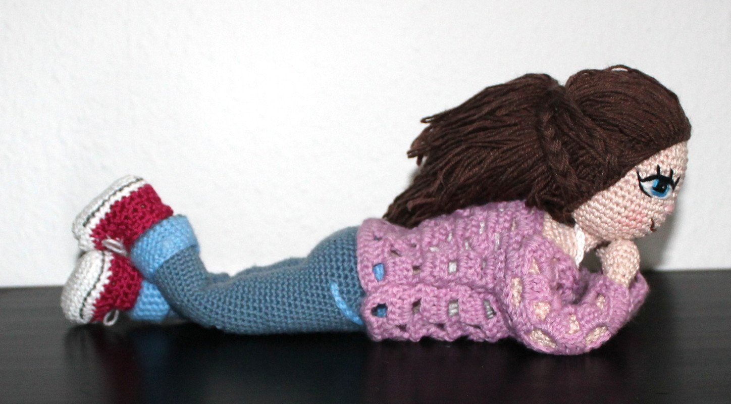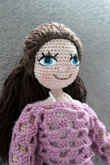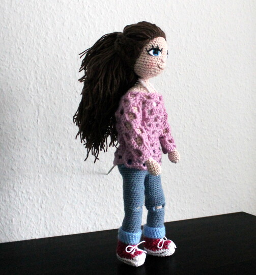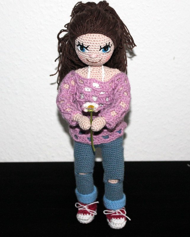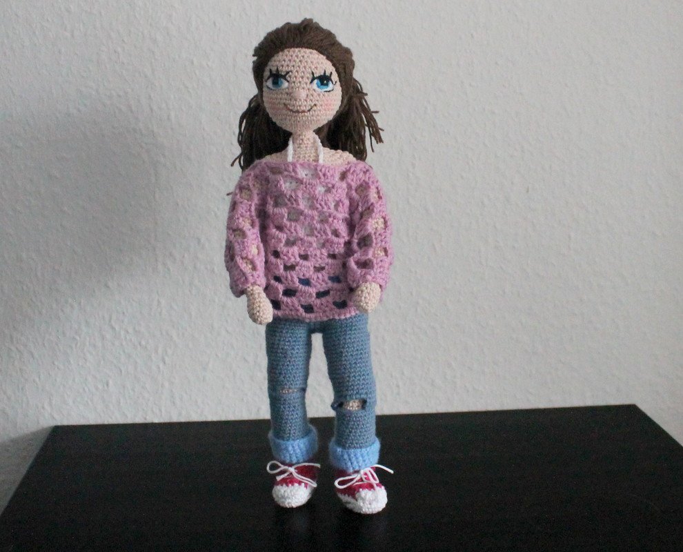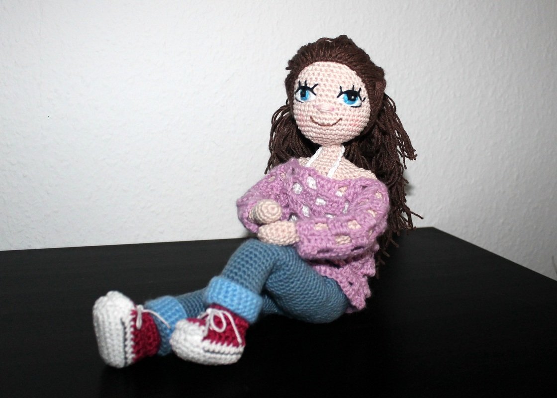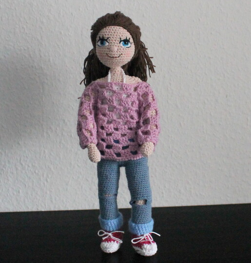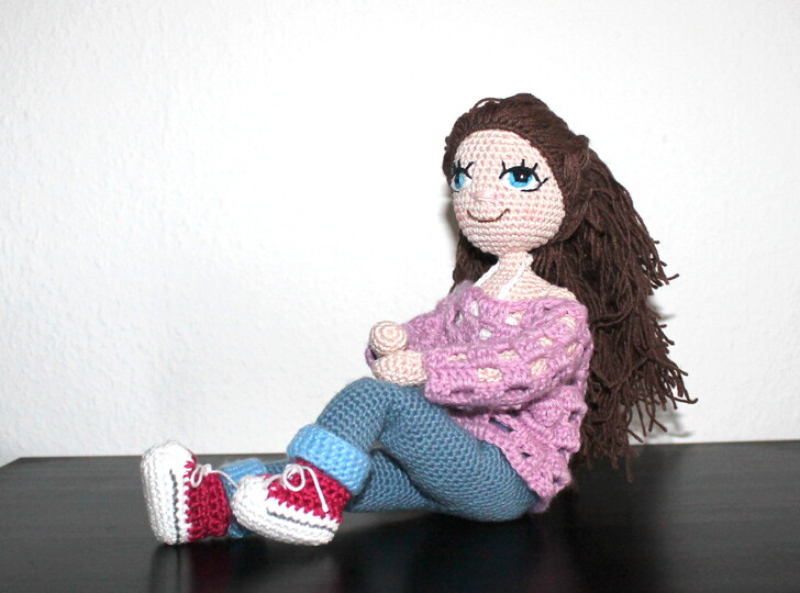 The crochet doll may be sold, if you add the suitable link and a note: "Crochet after an instruction of masche-fuer-masche!".