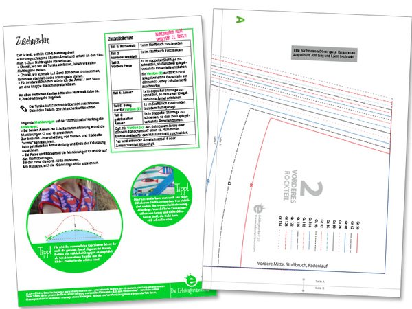 • 6 pages of sewing and cutting instructions (without photos. Text in English)