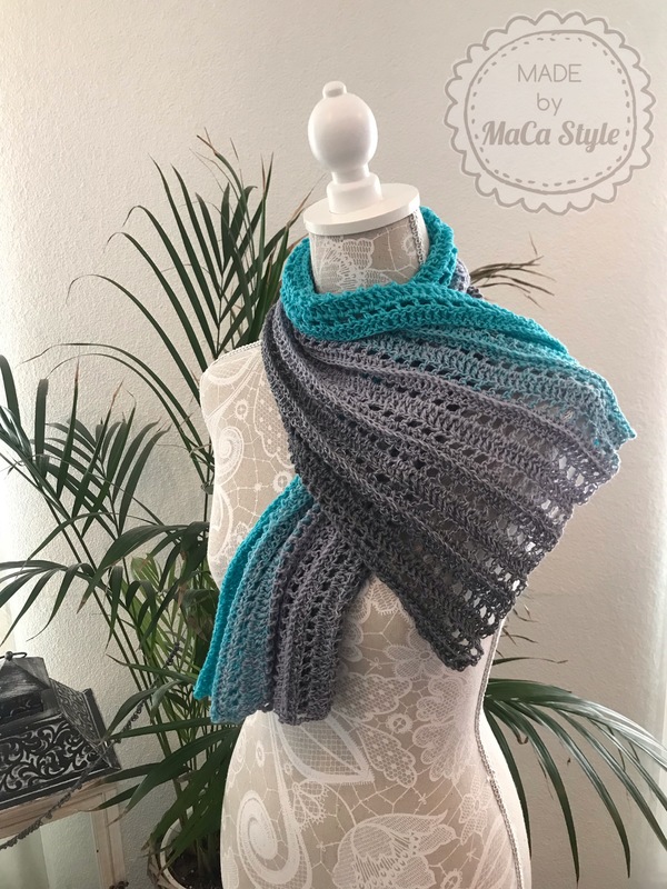 Ich habe hier NS 4 verwendet. Der extravagante Schal rundet jedes Outfit exzellent ab. Ihr könnt andere Wolle mit passender NS nehmen. Beachtet bitte, dass sich dann die Grösse des fertigen Werkes ändert.
