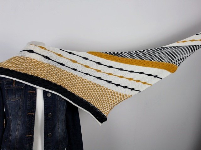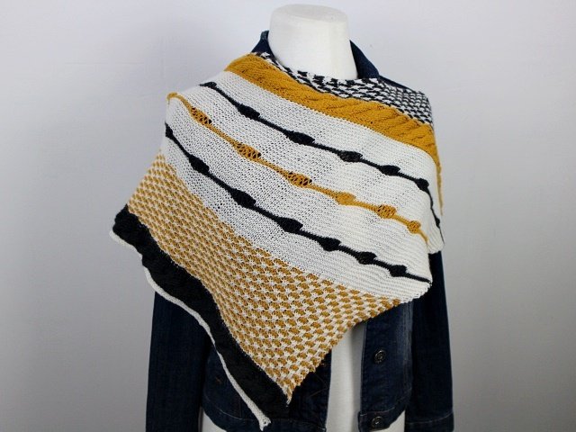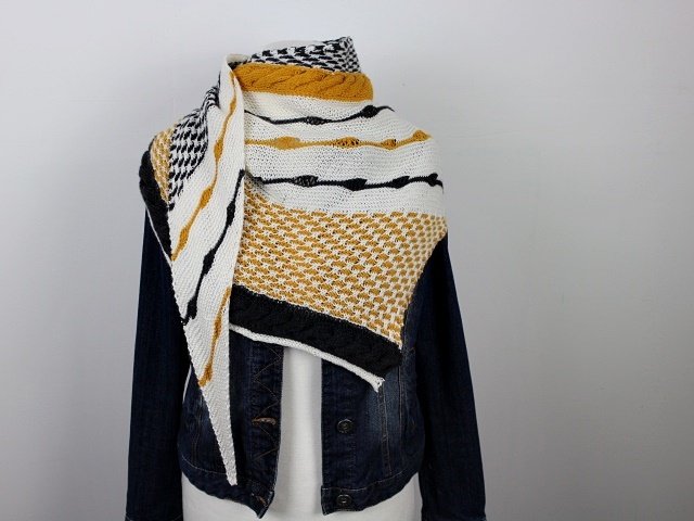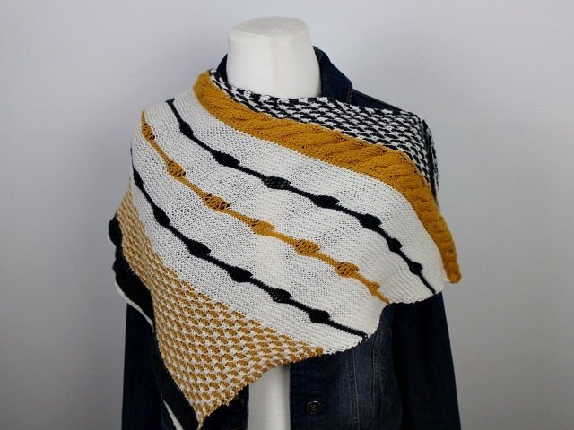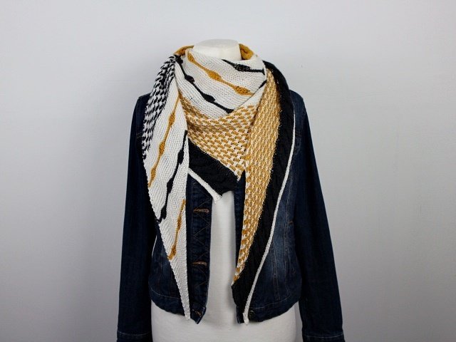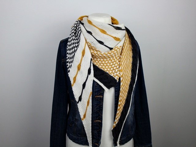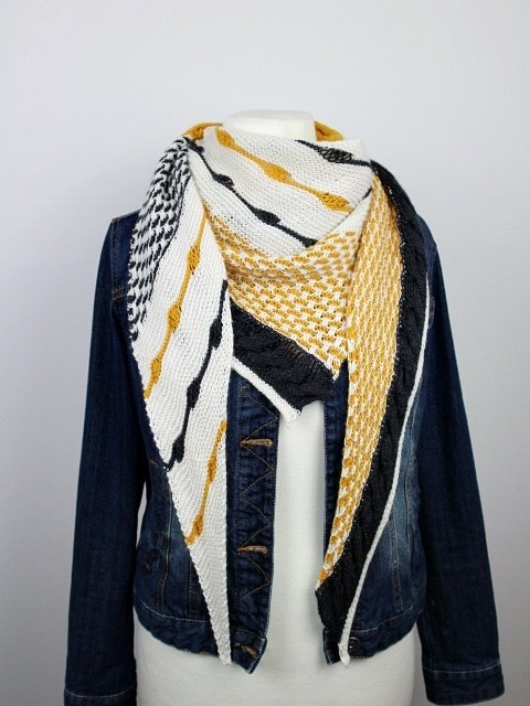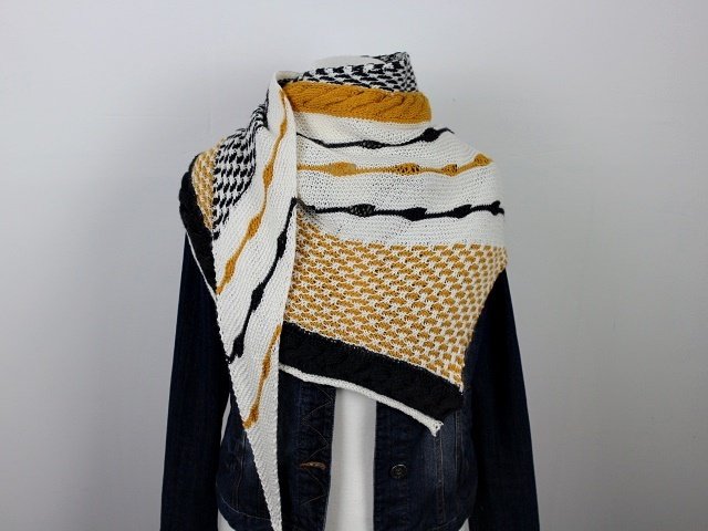 Yarn: Schachenmayr Regia Premium Silk 4-ply (55 % wool, 25% polyamid, 20% silk) 400 m / 437 y 100g Color A: white 100g color B: yellow 50g color C: dark gray 50g