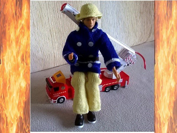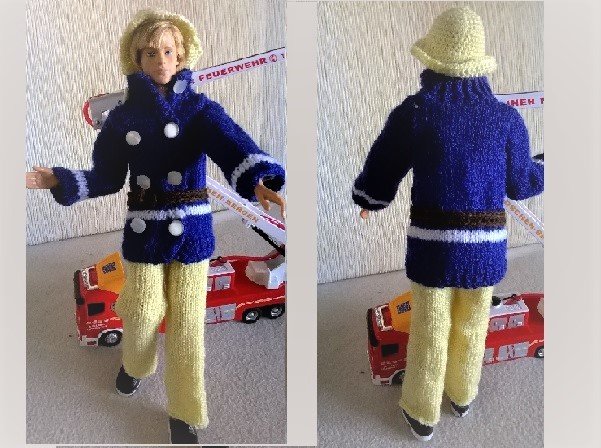 Unsere männliche Anziehpuppe bekommt eine schicke Feuerwehr Uniform.