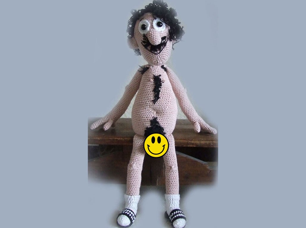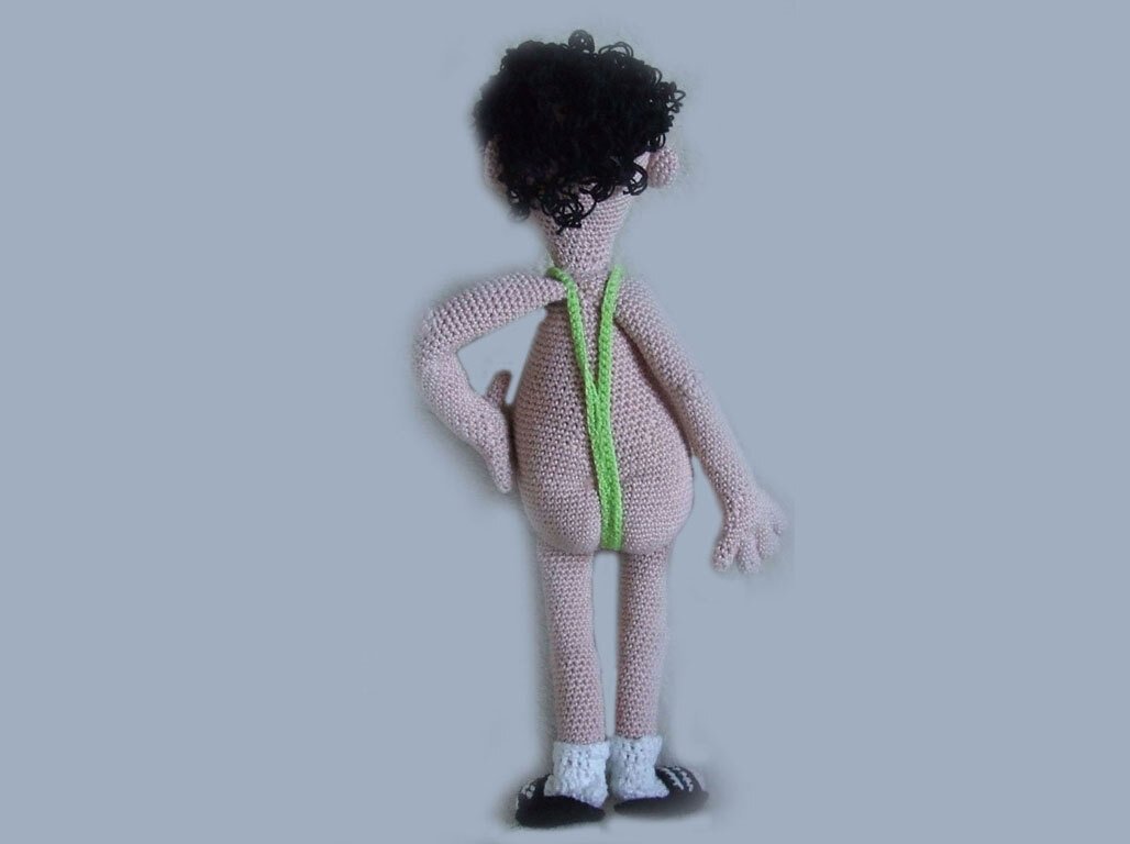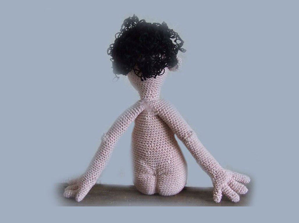 2 mm-crochet hook, Phildar Cotton :3 x Skincolor (=Phildar cotton poudre), 1 x black, 2 black glassbeads of 10 mm