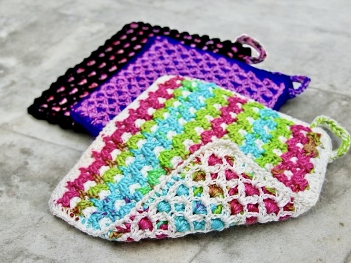 Would you like to crochet a unique potholder? Then this pattern is exactly right for you. Using two colors and two skeins of yarn, you can quickly and easily create these trendy potholders. Whether you prefer a classic black-and-white look or something bright and colorful, your creativity knows no limits.