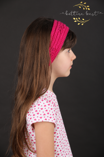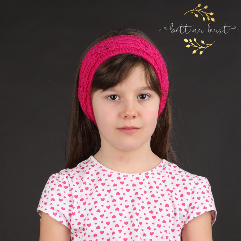 The headband is knitted transversal. Therefore it can be easily adjusted to smaller and larger head circumferences.
