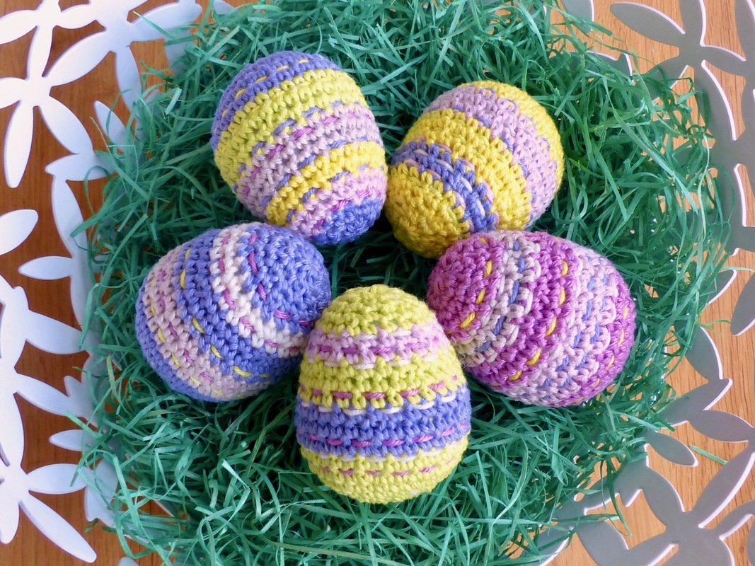 With this crochet pattern you may crochet Easter eggs in various colorful variations and you may use even rests of yarn because you only need less than 5 g per egg.