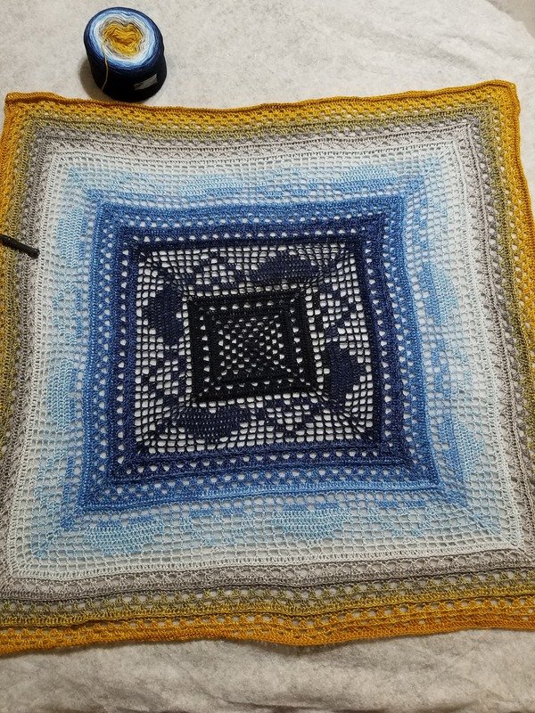 The pattern is diveded in several parts, of which the first one is a chart, how to work the first rounds as square blanket.