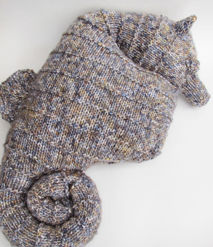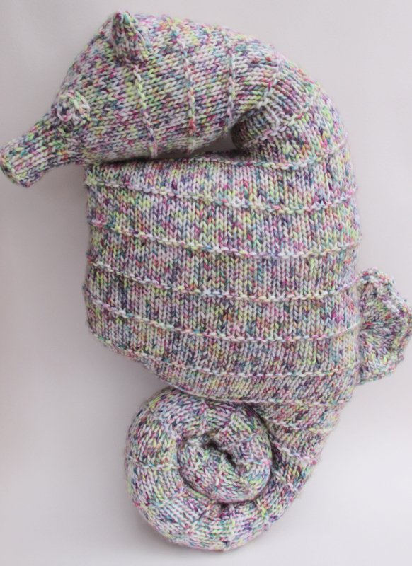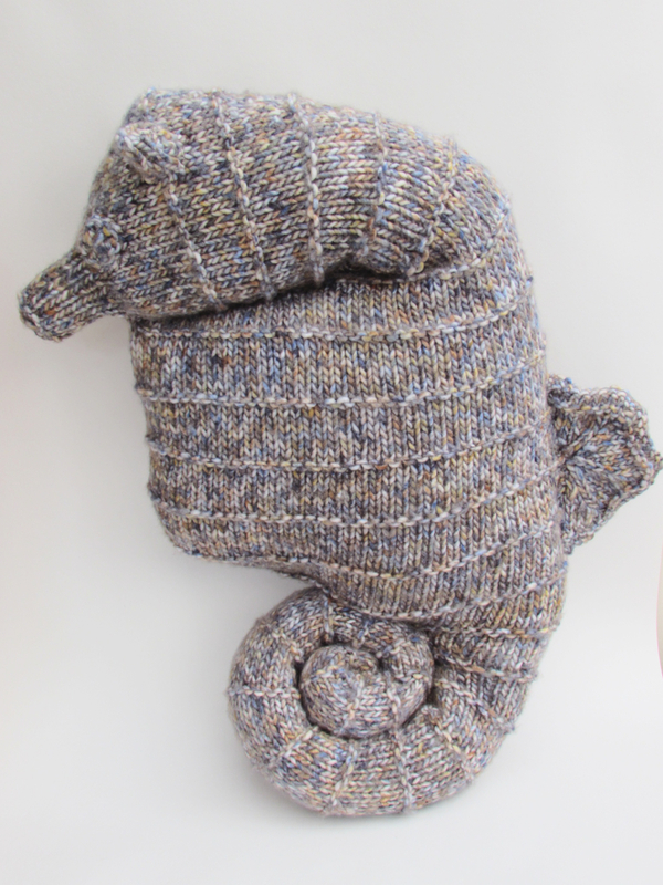 The Seahorse Cushion Knitting Pattern is a charming pattern to make a supersized seahorse cushion.
