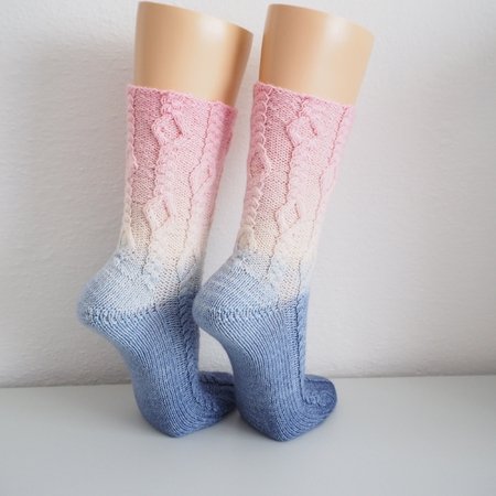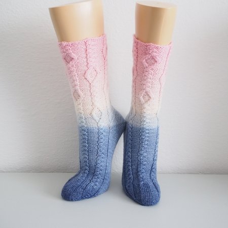The pattern is charted, heel and toe instruction is included but any other can be worked too - according to your own favourite style