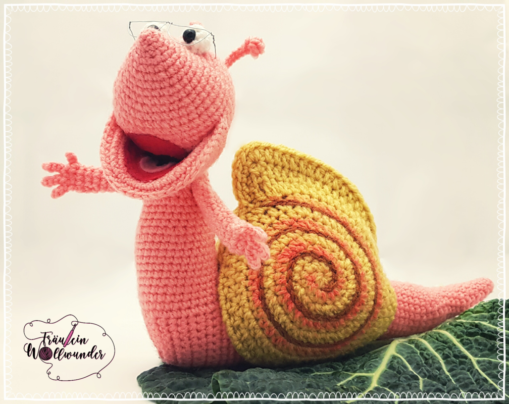 If you crochet the snail with the given wool, it will end up about 20 cm high and 26 cm long