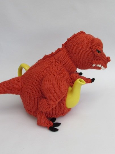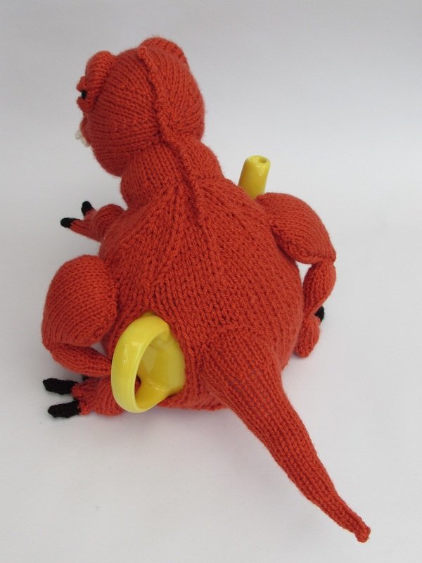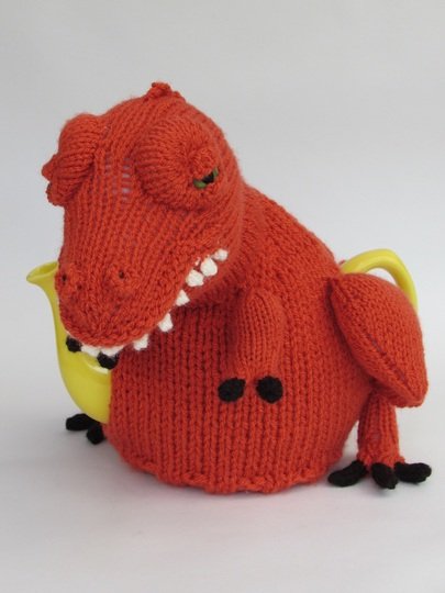 The Tea-Rex Tea Cosy knitting pattern to make this great Jurassic park classic, the king of the dinosaurs; tyrannosaurus Rex.